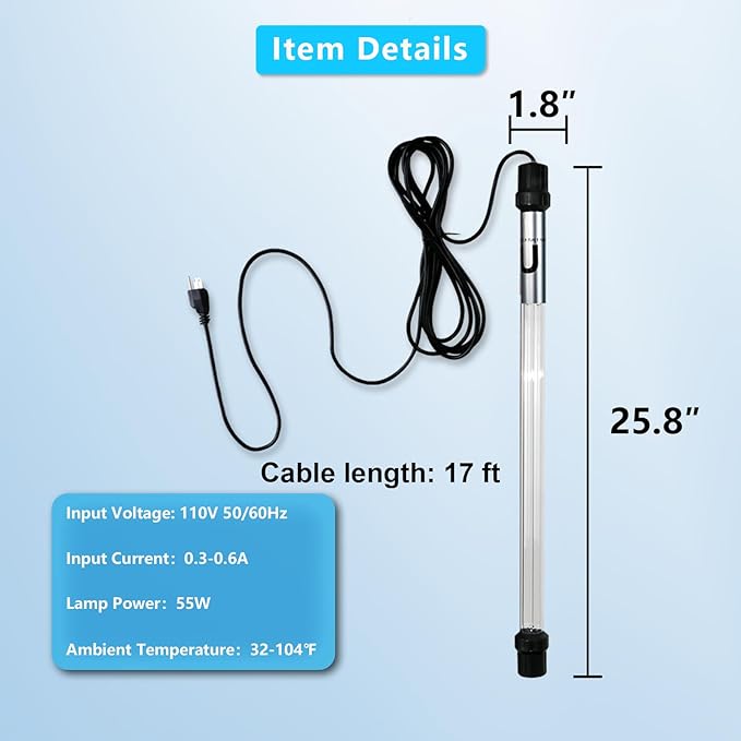 • 【365 Days Warranty】In order to help you master the installation and usage skills quickly, we have released a detailed installation video on the listing. The lifespan of the uv light is 8000 hours, we will provide a one-year warranty. If you have any questions, feel free to contact us at any time. EPA EST NO.: 96998-CHN-1