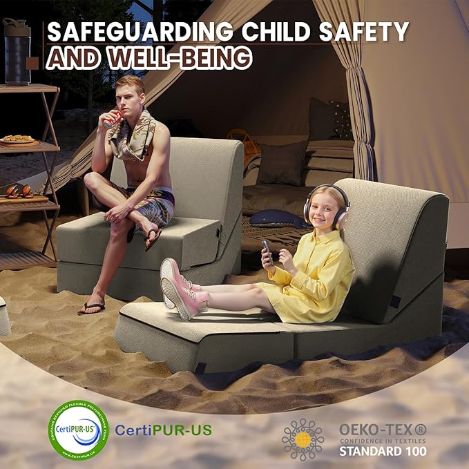 • Space-Saving Foldable Design:With a simple operation, this sofa bed can flexibly transform within seconds, switching from a comfortable sofa to a cozy bed or a relaxing lounge chair to meet various resting needs. It folds compactly, fitting easily in a car trunk for camping trips. Besides, the large, well-designed pocket can hold items like your phone, books, and sunscreen. You can reach for what you need without getting up frequently, staying relaxed throughout your outdoor leisure time.