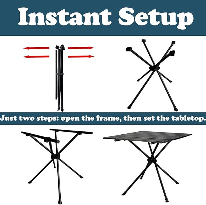 • [High Quality]: Constructed from thick carbon steel, the folding camping tabletop and legs are durable, waterproof, fade-resistant, and easy to clean.