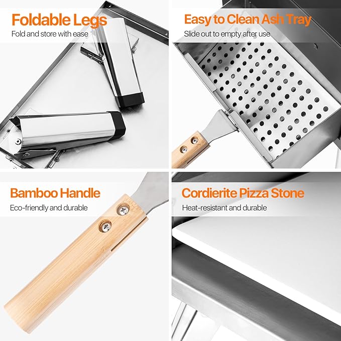 • Ultra-Portable & Ease of Assembly:The portable pizza oven is lightweight and durable with folding legs for simple assembly, no tools needed, quick disassembly and assembly for easy cleaning and storage, and weighs only 35 pounds, so you can have your own handmade, delicious pizzas anytime, anywhere, ideal for backyard or outdoor cooking events