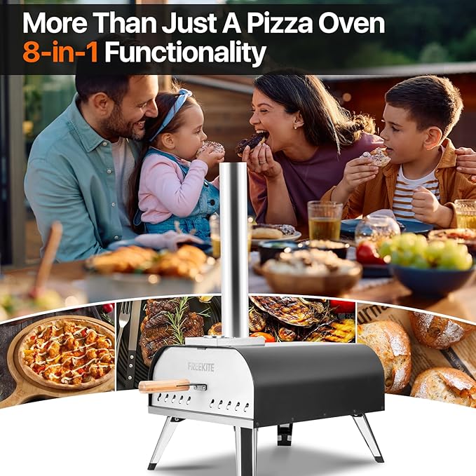 • Outdoor pizza oven wood fired:Achieve a balanced, reliable burn with hardwood pellet fuels that provide the perfect burn-to-smoke ratio, adding the special flavor of smoky firewood to your food that gas grills don't have.Choose firewood for a quick, authentic smoky flavor and charcoal for a unique charcoal-grilled flavor. Comes with a large capacity fuel tray, eliminating the need for frequent filling of firewood fuel. Healthier, more environmentally friendly and more flavorful