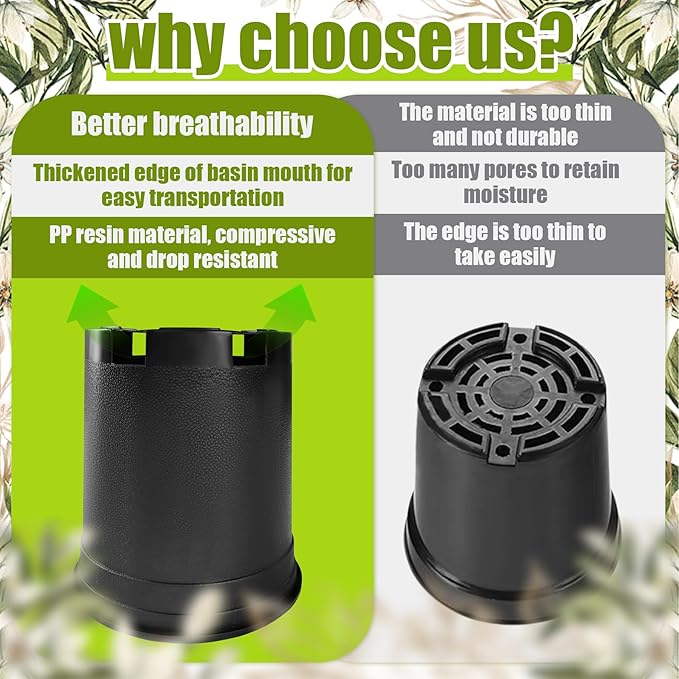 • Sturdy and durable - Plant pots are made of high quality PP plastic, which is tough, not easy to break or crack. Whether it is digging or daily use, it can withstand pressure and ensure a long service life.