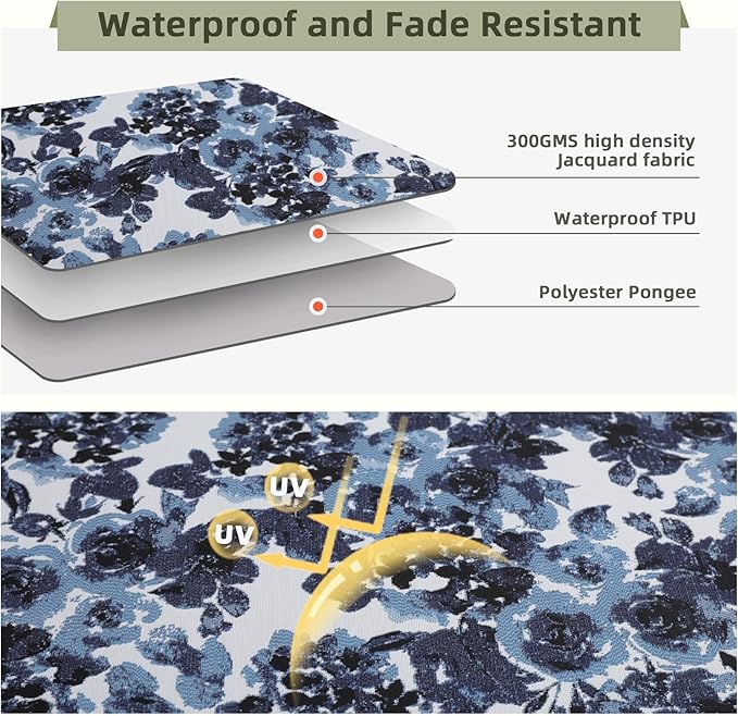 • Multiple Waterproof Cushions: This outdoor furniture seat cushion is made from 300GMS high density polyester fabric, waterproof TPU cover and sponge fabric from the outside to the inside, making the mat waterproof and durable. It also features a hidden zipper to prevent water from seeping through the zipper, enhancing the waterproofness of the product.