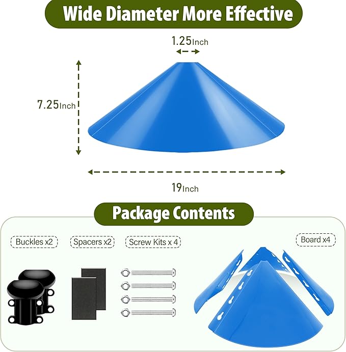 • [Reasonable Size] Wide 19" Diameter,The squirrel repellent easily attaches to any existing bird house pole or shepherd's hook and also protects hanging bird feeders. All hardware and installation instructions are included.