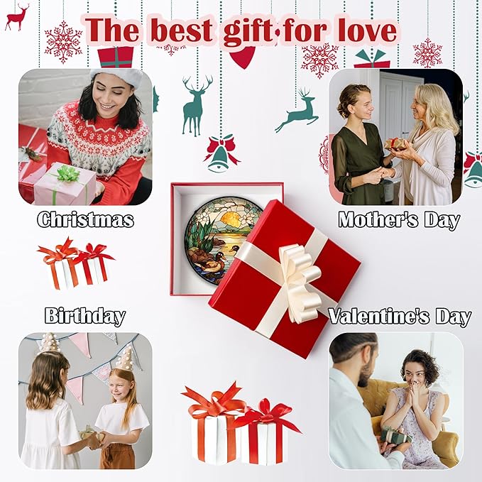 Stained Glass Window Hanging, Ducks in The Pond Sun Catcher for Door Home Decor Landscape Plant Suncatcher Christmas Mother's Day Birthday Gifts for Women Men Mom Nana 7.8 in