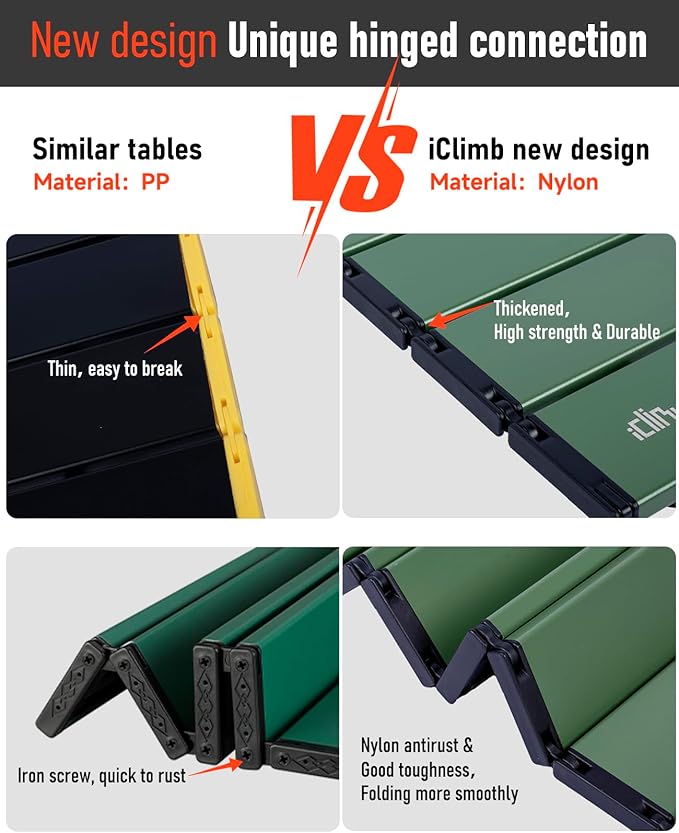 • Ultralight, made of high quality aluminum alloy 6063, only 1.5 lbs; Max Load 66 lbs; Unlike wooden or nylon-top tables, this table is durable, waterproof, corrosion-resistant, easy to clean; Heat resistant, can put your stove on
