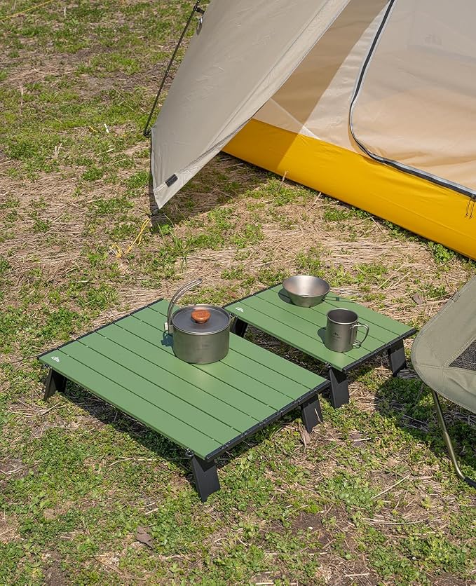 • Ultralight, made of high quality aluminum alloy 6063, only 2.4 lbs; Max Load 66 lbs; Unlike wooden or nylon-top tables, this table is durable, waterproof, corrosion-resistant, easy to clean; Heat resistant, can put your stove on