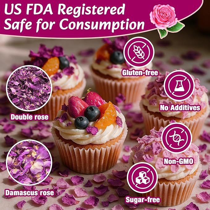 • 【Multiple Uses – Culinary & Creative】Perfect for tea infusions, cocktail garnishes, cake and dessert decoration, as well as DIY soaps and handmade gifts. One product, endless creative moments.
