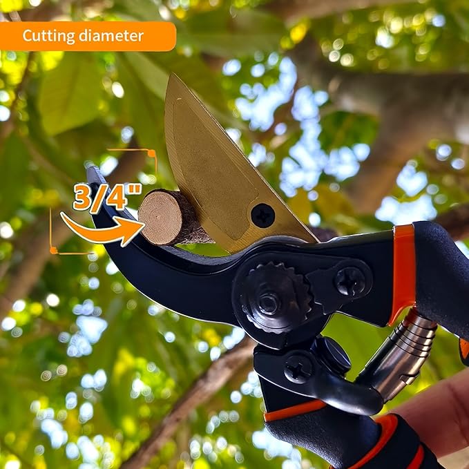 • 🌷8.5" Professional Premium SK5 Steel with Titanium Bypass Pruning Shears-Ultra-sharp And Durable,Ergonomically Designed,Versatility Pruners For Gardening,Safe And Easy To Handle