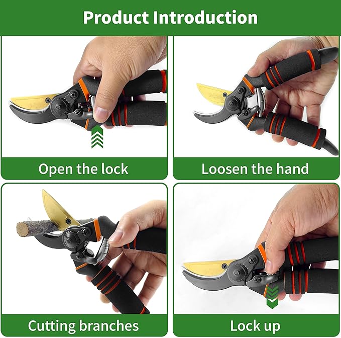 • 🌷8.5" Professional Premium SK5 Steel with Titanium Bypass Pruning Shears-Ultra-sharp And Durable,Ergonomically Designed,Versatility Pruners For Gardening,Safe And Easy To Handle