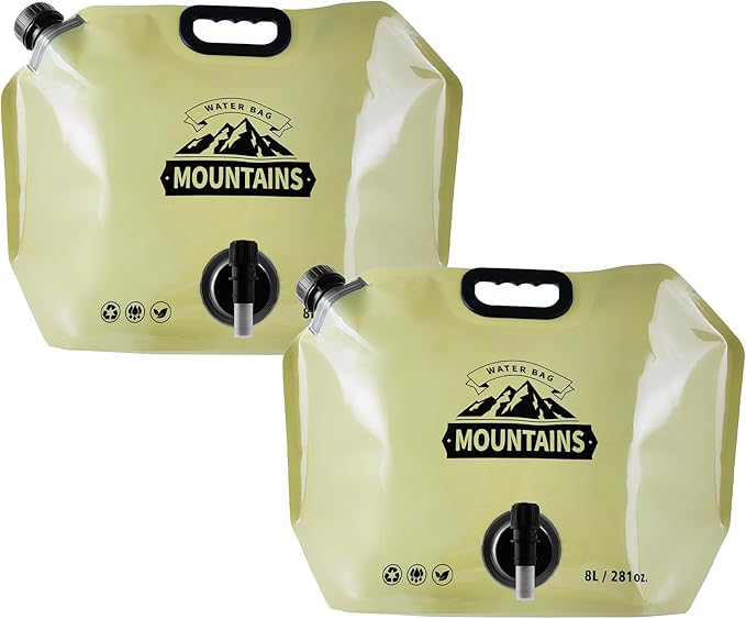 • 【Wide Uses】This No-Leak Freezable Collapsible water container Bag wide range of uses, It's perfect for Camping, RV, Hunting, Backpacking, Sports, Festivals, Parties, Car emergencies & natural disasters like hurricane, tornado, earthquake & floods.