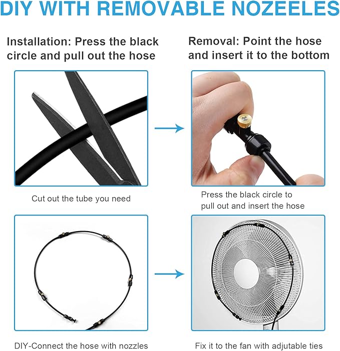 • 🔧【Quick-to-Connect Setup for Easy Installation】: This mister system comes pre-assembled with all the necessary components. The Quick-to-Connect fittings make installation a breeze – simply push the ring, insert the tubing, and pull back to securely lock the connection in place. This user-friendly feature ensures that you can set up the patio misting system quickly and hassle-free, with no additional tools required.