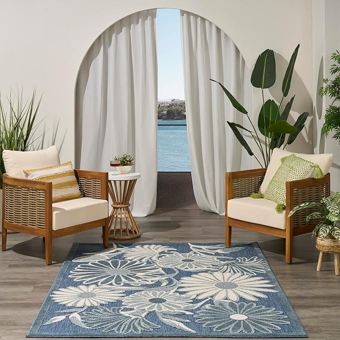 Nourison Aloha Blue 3'6" x 5'6" Area Rug - Easy Clean, Non Shedding, Bed Room, Living Room, Dining Room, Kitchen (4' x 6')
