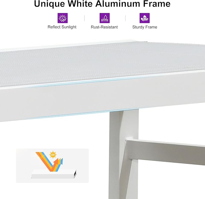 • Rust-Resistant Aluminum Frame: The white-coated aluminum frame reflects sunlight and features a strong, stable, lightweight structure that is not easy to shake.