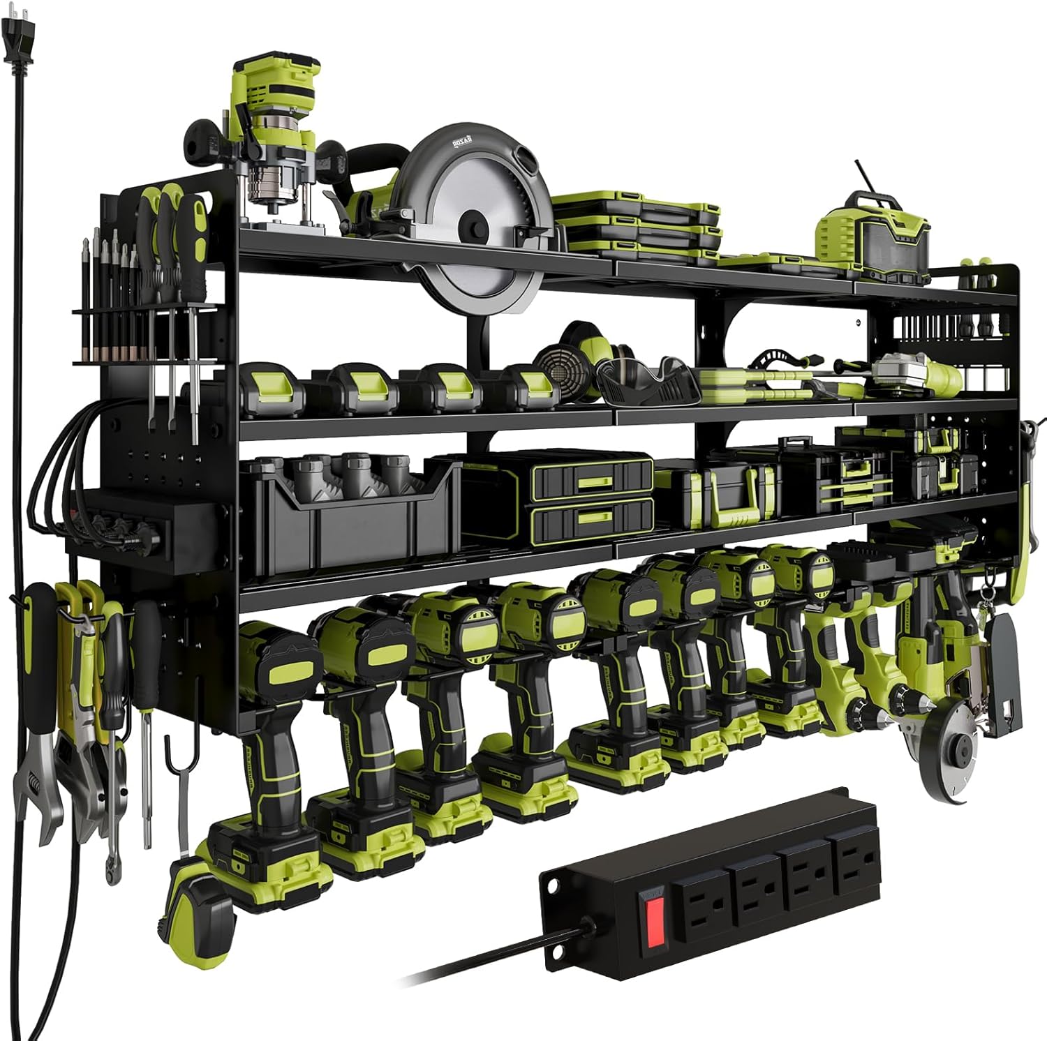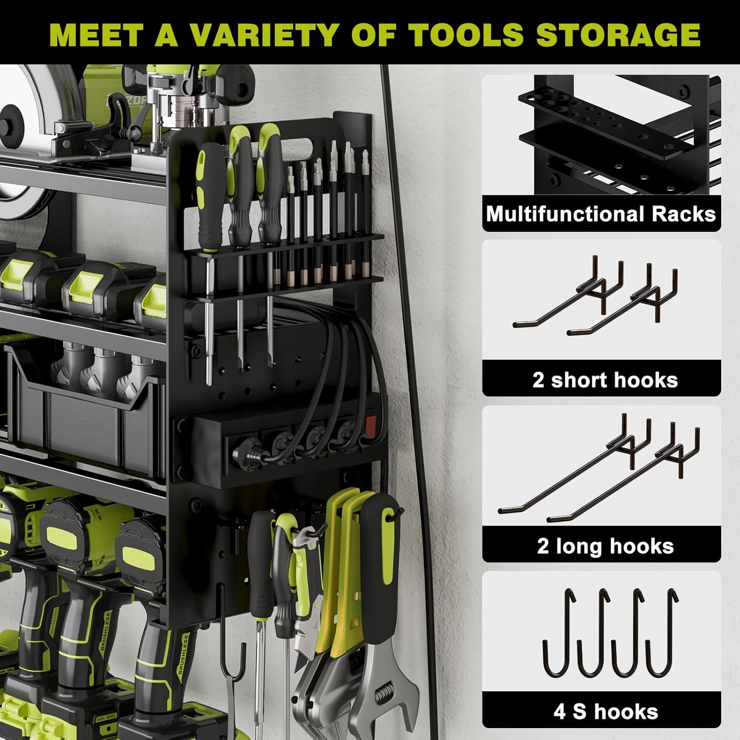 • Customizable Design: The 4-hole power strip can be mounted on either side for convenience, and the adjustable shelves give you full flexibility to organize your tools the way you want