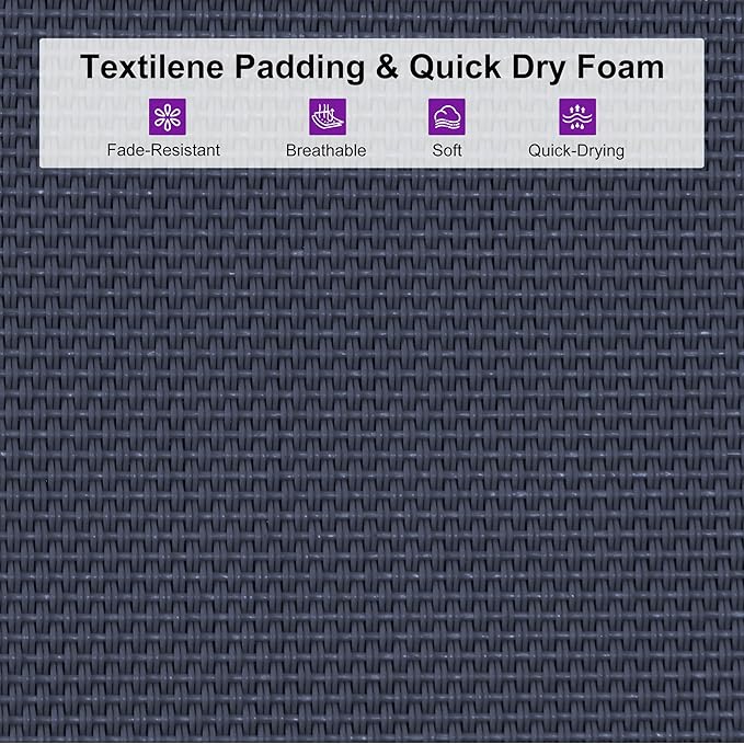 • Premium Textilene Fabric: It is filled with high-elasticity, quick- dry sponge and has excellent water permeability.