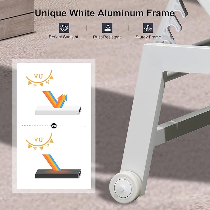 • Rust-Resistant Aluminum Frame: The white-coated aluminum frame reflects sunlight and features a strong, stable, lightweight structure that is not easy to shake.