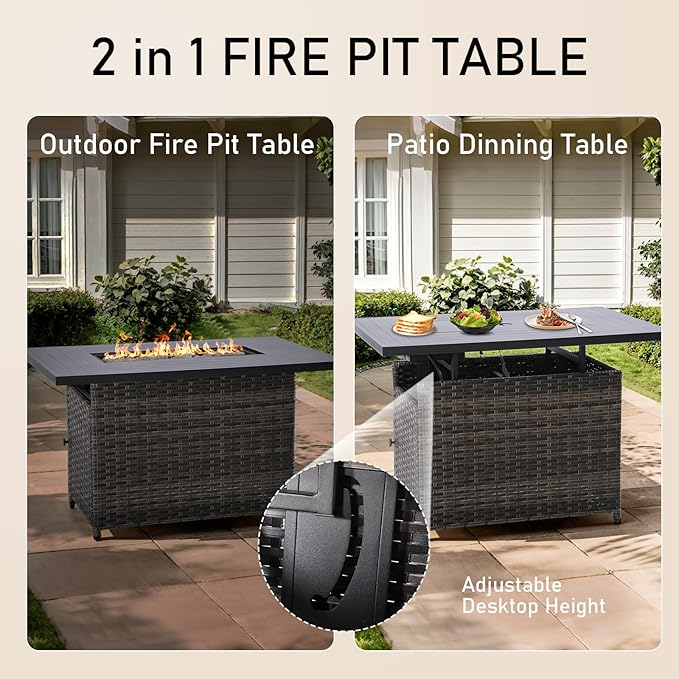 • 【Warm Bonfire and Auto-ignition Device】The gas fire pit table has a heat output of 50,000 BTUs and is equipped with an integrated electronic ignition that adjusts the flame to your desired temperature with the control button. Continuously provide you with enough warmth.