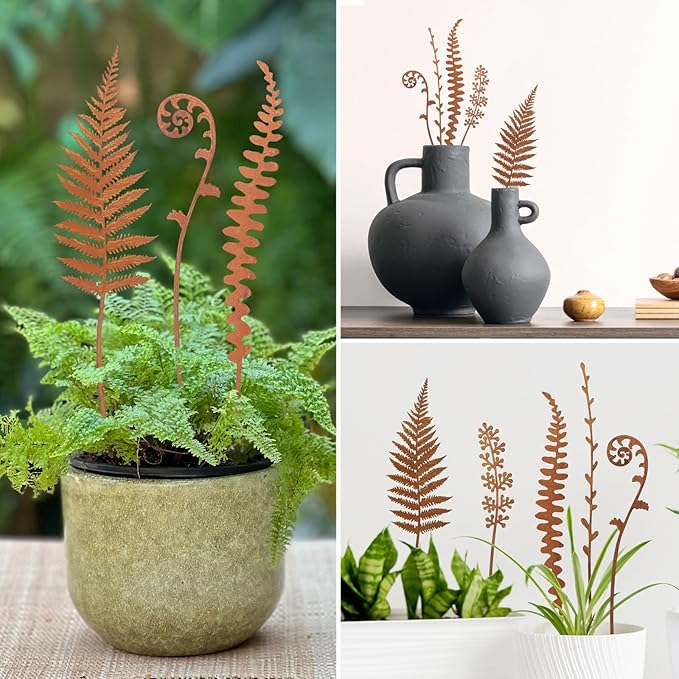 • METAL FLOWERS STAKES:This is a set of 5 decorative garden stakes , Product Dimensions measuring approximately 0.1x3x14inches。 This artistic metal a stunning focal point, perfect for gardens, yards, flower beds, fronts, or patios.Metal flowers for outside Made of durable metal and then rusted to give a beautiful vintage look.