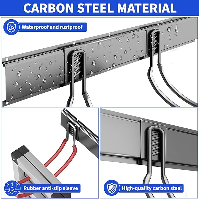 • HEAVY-DUTY 300 LBS CAPACITY: garage organizers and storage Constructed from premium steel with a rust-resistant, double powder-coated finish. Rubber-coated hooks prevent slipping. Built for long-lasting durability in your garage or garden