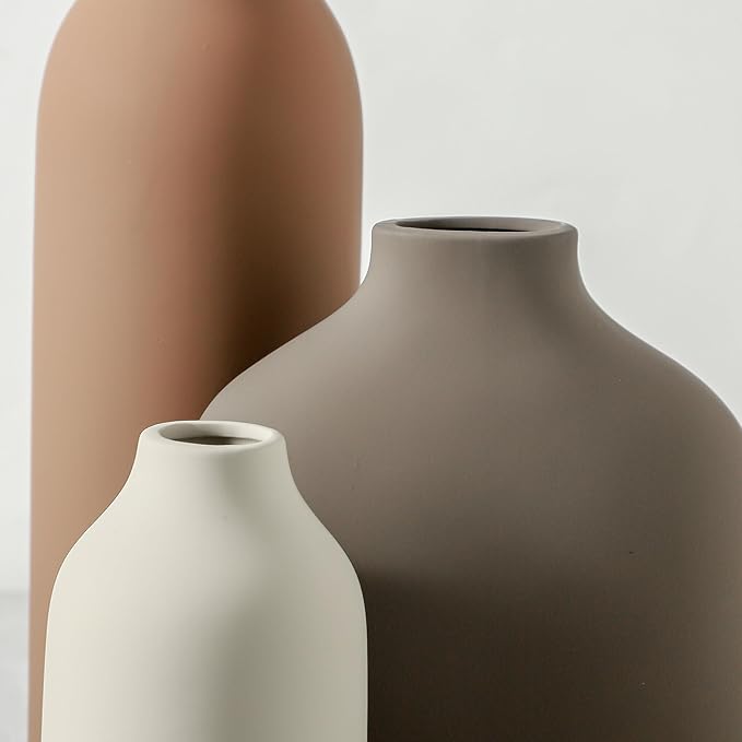 • Masterful Ceramic Craftsmanship – This vase set of 3 is meticulously crafted from premium clay and fired at high temperatures for lasting durability. Featuring a corrosion-resistant surface, the vases also have a waterproof interior, making them ideal for holding fresh flowers and preserving their vibrancy. They also elegantly showcase artificial plants and dried flowers, adding a timeless charm to your home.