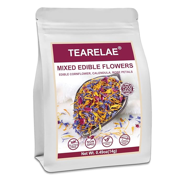 TEARELAE - Mixed Edible Flowers - Premium Rose, Cornflower, and Calendula Petals - Edible Cake Decorations - Pure Natural - Caffeine-Free - for Drink, Tea, Salad and Soap - 0.49oz/14g