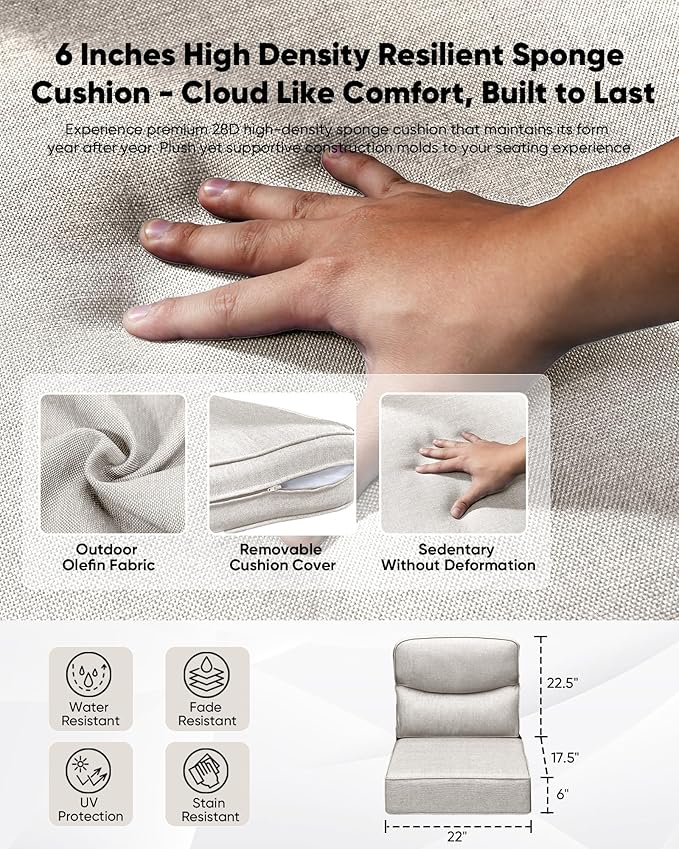 • All-Weather Durability: 50% Thicker Frame & PE Wicker Built to last with a rust-resistant, triple-coated metal frame (350lb capacity) and handwoven UV-proof PE wicker. Olefin fabric resists stains, fading, and water. Pro tip: Cover/store indoors in harsh weather.