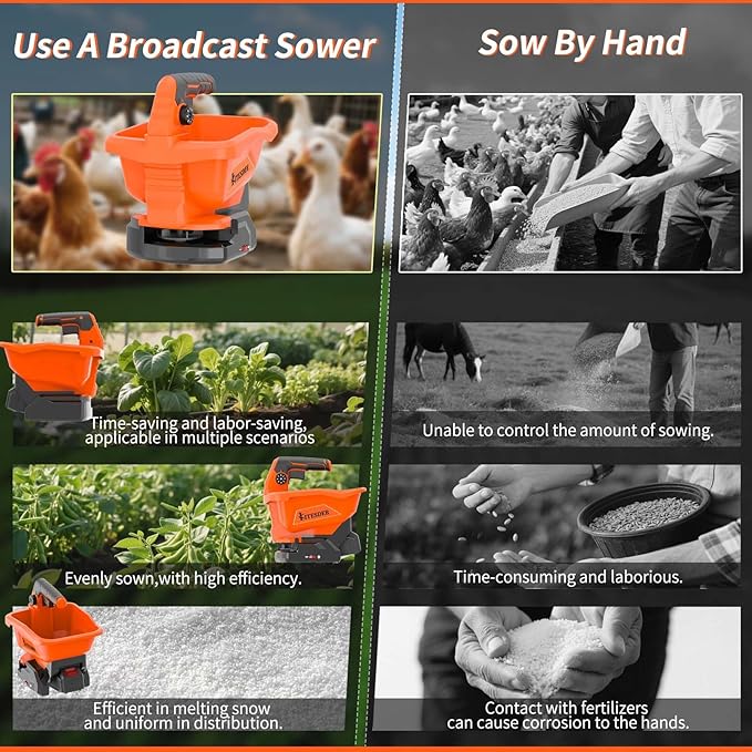 • 【Four-Season Utility】Greatly improves work efficiency by being usable year-round, whether sowing seeds in spring, spreading fertilizer in summer, sprinkling salt in winter, or feeding animals as needed.