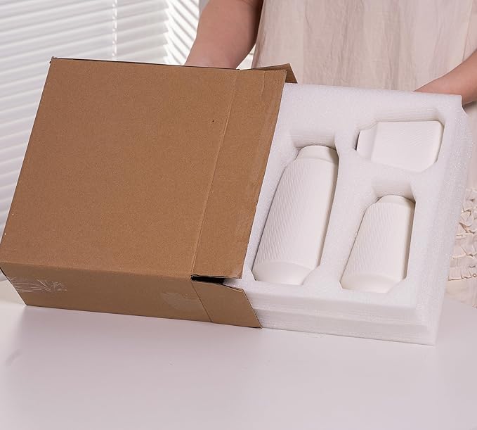 • Specification: There are 3 vases in a set, packaged using a box, the size of the package is 11.42*5.12*25.5 inches, weighing 1.35 kg.Each vase is packaged securely in Styrofoam to ensure a safe delivery, and avoid breakage in transit. These vases come in a sturdy box, ready to be wrapped and gifted to a loved one!