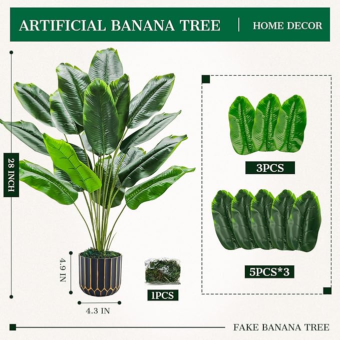 • Adjustable Shape: Inspired by real tropical plants, this fake tree features lifelike leaves and flexible branches. Insert the stems and gently bend the leaves to create a full, natural look tailored to your space