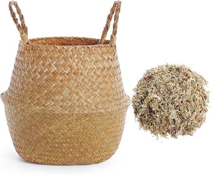 • Handy and Compact: this wicker plant basket is designed for ease of use and storage; It can be effortlessly folded when not in use, saving space in your home; The compact, dry sphagnum moss included is ready for fluffing, enhancing the look and feel of your indoor plants with minimal fuss