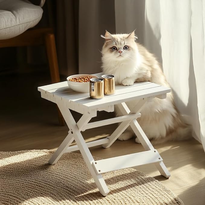 Outdoor Side Table, No Assembly Folding Wooden End Table for Outside or Indoor, Small Patio Tables for Camping, Pool, Bathroom, Backyard and Porch (White)