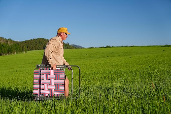 Retro Webbed Camping Chair - Lightweight, Foldable, Durable Steel Frame, 300lb Capacity, Vintage Red/Blue Stripes by Caddis Sports (2)