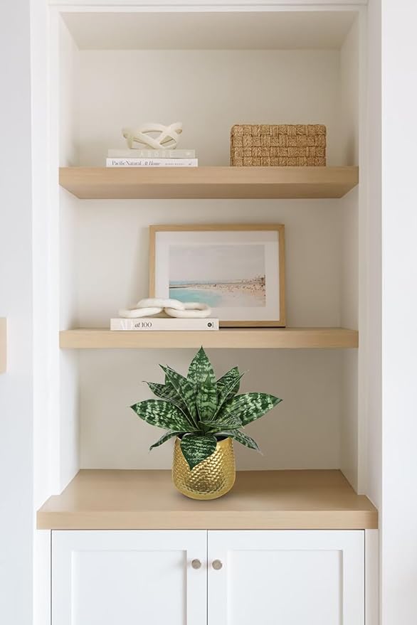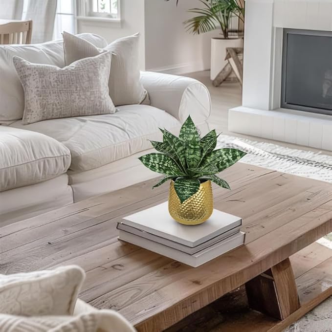 • Perfect Size: Faux snake plant in gold pots total height: 9", golden metal pot: 2.4 "W x 3.9 "H; Please read the dimensions carefully. Succulent agave plants artificial will easily catch you eyes, bring your home a vibrant sense of greenery