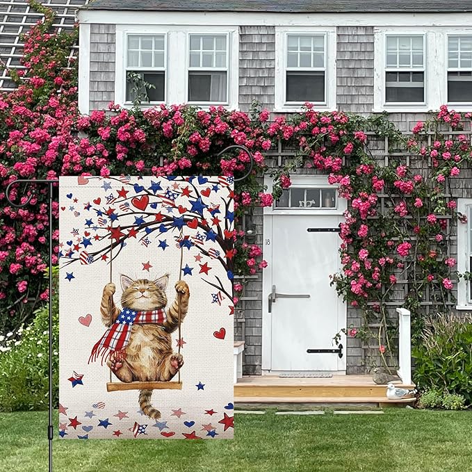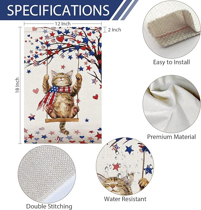 • Patriotic Cat Garden Flag - Our memorial day garden flag is made of two layers burlap material, weather resistant,and fade-resistant.High-strength double stitching ensures durability