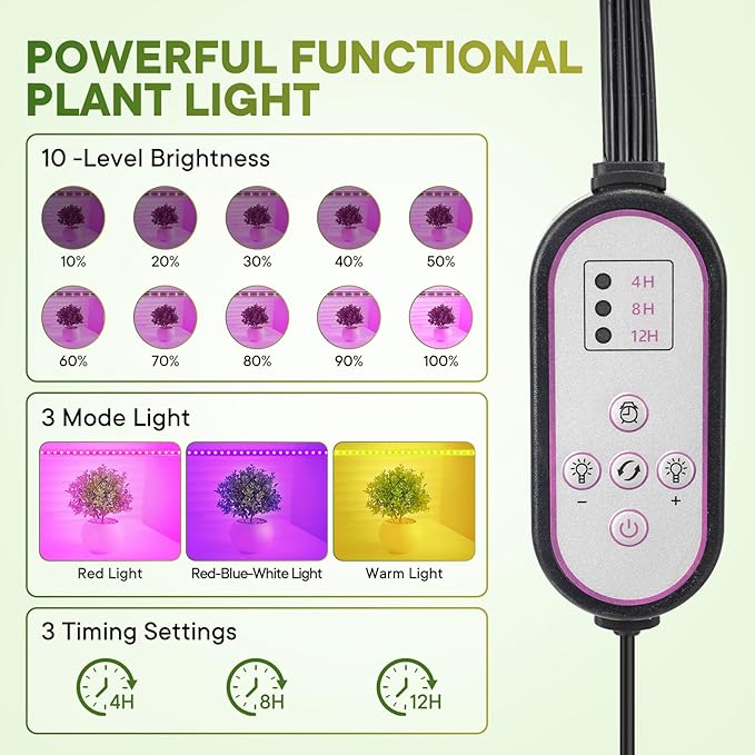• FULL-SPECTRUM GROW LIGHTS: Equipped with 4 plant growth light strips that simulate sunlight, ensuring each layer gets optimal lighting. Choose from 3 colors (red/warm/blue) and 3 timer settings (4/8/12 hours) to ensure proper plant growth