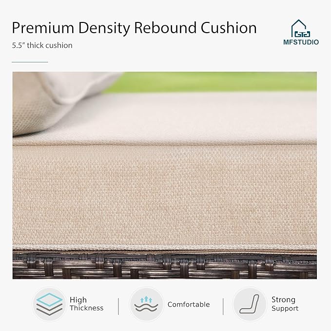 • Sturdy Structure: Our outdoor patio furniture features with thicken steel frame with E-coating for excellent performance on anti rust and long-lasting durability. The steel slat cross bar on the bottom adds stability and supports up to 350lbs for each single sofa chair, ensuring a luxurious outdoor experience for you