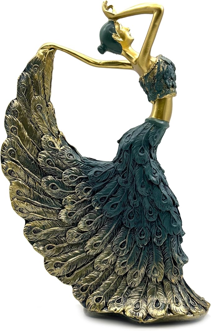 • ELEGANT DESIGN: Modern Peacock Art Figurine Dancer Statue crafted from high-quality resin, perfect for adding sophistication to any room's decor