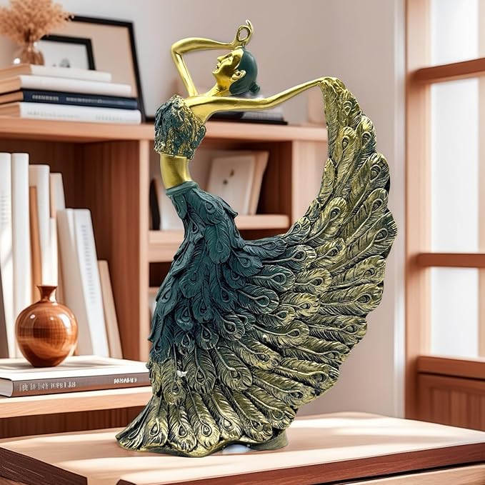 XINDAM Elegant Peacock Art Figurine Dancer Statue Decorative Home & Office Figurines Home Office Display Craft Living Room Decor Ornaments for Tabletop