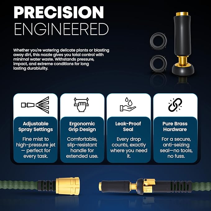 • [Feather-Light, Super Strong] Redefining watering with its incredibly lightweight design, experience unmatched watering efficiency with our Titan garden hose. When paired with our precision-engineered nozzle, this hose delivers exceptional pressure for everyday watering tasks while saving you water. Ideal for garden maintenance, vehicle cleaning, RV, marine use and more, for a powerful and consistent water flow.