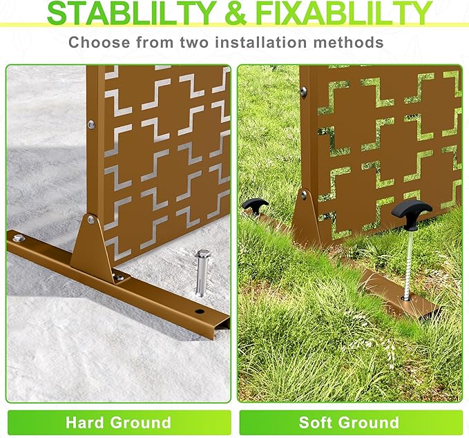 • 【Robust Metal Build】The metal privacy screen boasts a robust construction crafted from high-quality galvanized steel. Designed to endure the rigors of outdoor elements, its sturdy build guarantees prolonged durability.