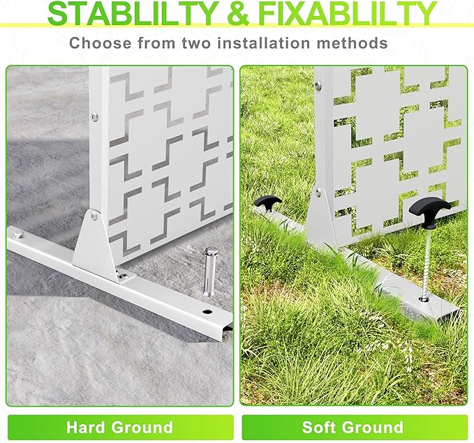 • 【Robust Metal Build】The metal privacy screen boasts a robust construction crafted from high-quality galvanized steel. Designed to endure the rigors of outdoor elements, its sturdy build guarantees prolonged durability.