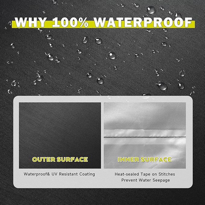 • WATERPROOF & ANTI-UV – Waterproof outer coating and heat-sealed tape on stitches prevent water seepage, making the cover completely waterproof to protect your grill. Inner PU coating layer protects your outdoor griddle from damage caused by prolonged sun exposure