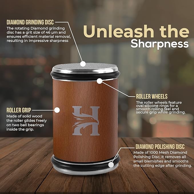 • ✅ SMOOTH, SILENT & PRECISE – Crafted with a solid hardwood body and whisper-quiet roller, our rolling knife sharpener delivers a smooth glide and precision angles for fast, effortless sharpening every time.
