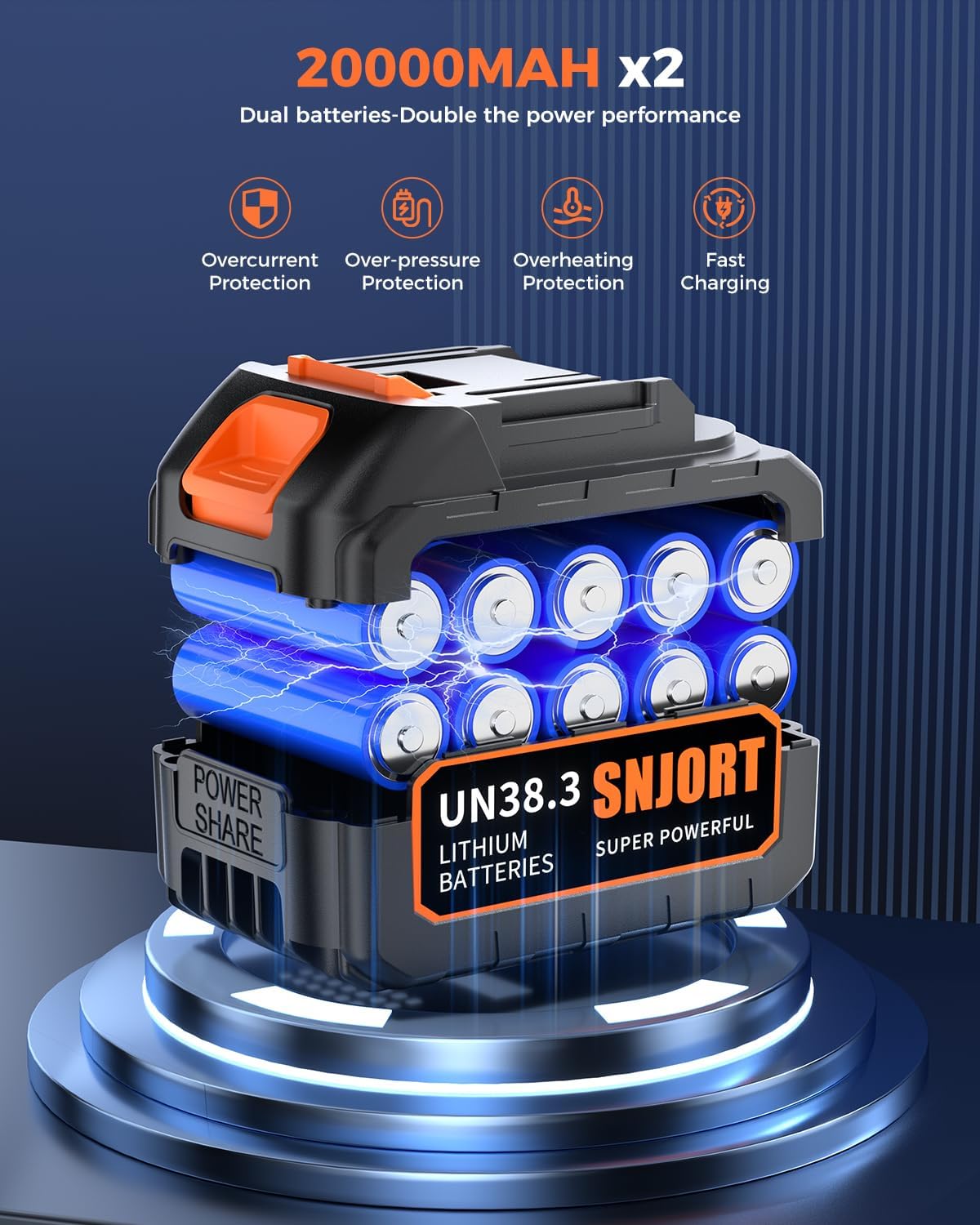 • Complete Leaf Blower Package: This cordless leaf blower is equipped with two 20,000mAh large-capacity batteries that provide up to 50 minutes of continuous operation. The Cordless leaf blowers do not require wires to provide faster, easier and easier cleaning.