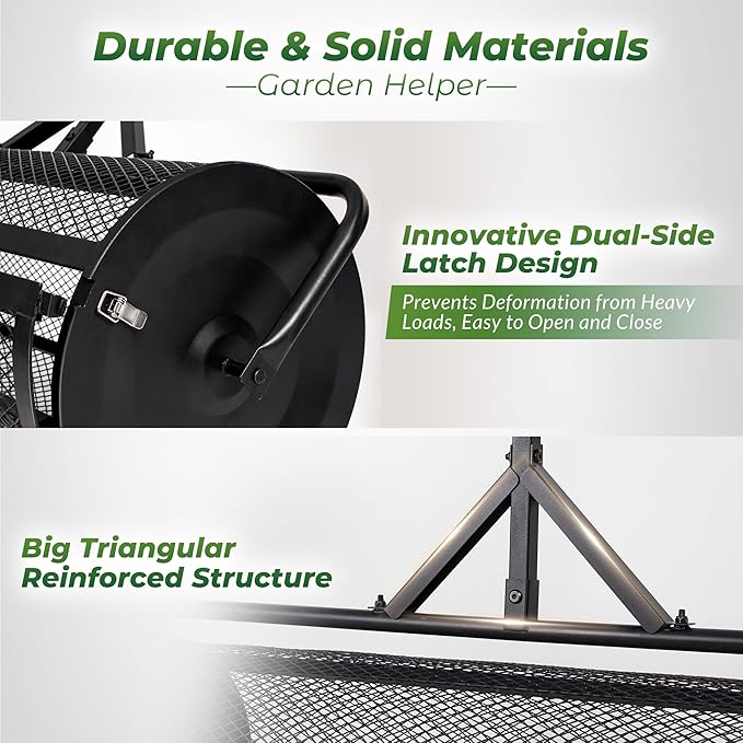 • EASY ASSEMBLY & MULTIFUNCTIONAL PERFORMANCE: Assembly takes just minutes—only 4 nuts, 2 bolts, and 2 pins. The rolling mesh breaks up clumpy materials while ensuring even spread. Ideal for distributing compost, peat moss, manure, topsoil, and other lawn care materials. Backed by Walensee’s customer support—contact us for any issues and we’ll provide professional solution for you.