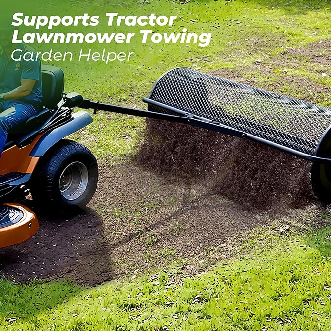 • MANUAL PUSH & TOW-BEHIND DUAL MODES: Equipped with an ergonomic T-handle for manual push/pull operation and compatible with garden machinery for tow-behind use. With the upgrade T-handle to avoid broken and makes it more durable and sturdy. Ergonomic rubber handle grips for non-slip and comfortable. Flexible functionality meets various lawn sizes and user needs—perfect for homeowners and professional landscapers alike.