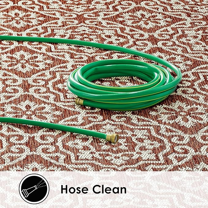 Nicole Miller New York Patio Country Julia Transitional Geometric Indoor/Outdoor Area Rug, Terracotta/Ivory, 5'2"x7'2"