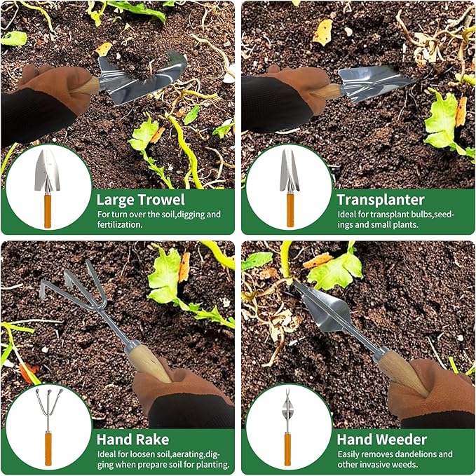 • 【Premium Stainless Steel Gardening Tools】- Crafted from high-grade stainless steel, this professional garden tool set resists rust, corrosion, and bending—even under heavy use. The premium stainless steel construction ensures years of reliable performance, making the garden tools for gardening perfect for durable gardening, landscaping, and planting.