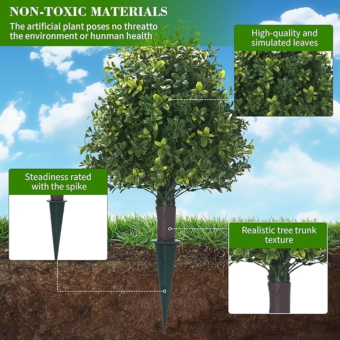 • Easy Setup with Reinforced Ground Spike: Designed with a convenient ground spike, this UV-resistant artificial boxwood topiary tree is incredibly easy to set up. Simply place it in soil, a planter, or a decorative pot to instantly enhance your space with greenery that looks fresh year-round.